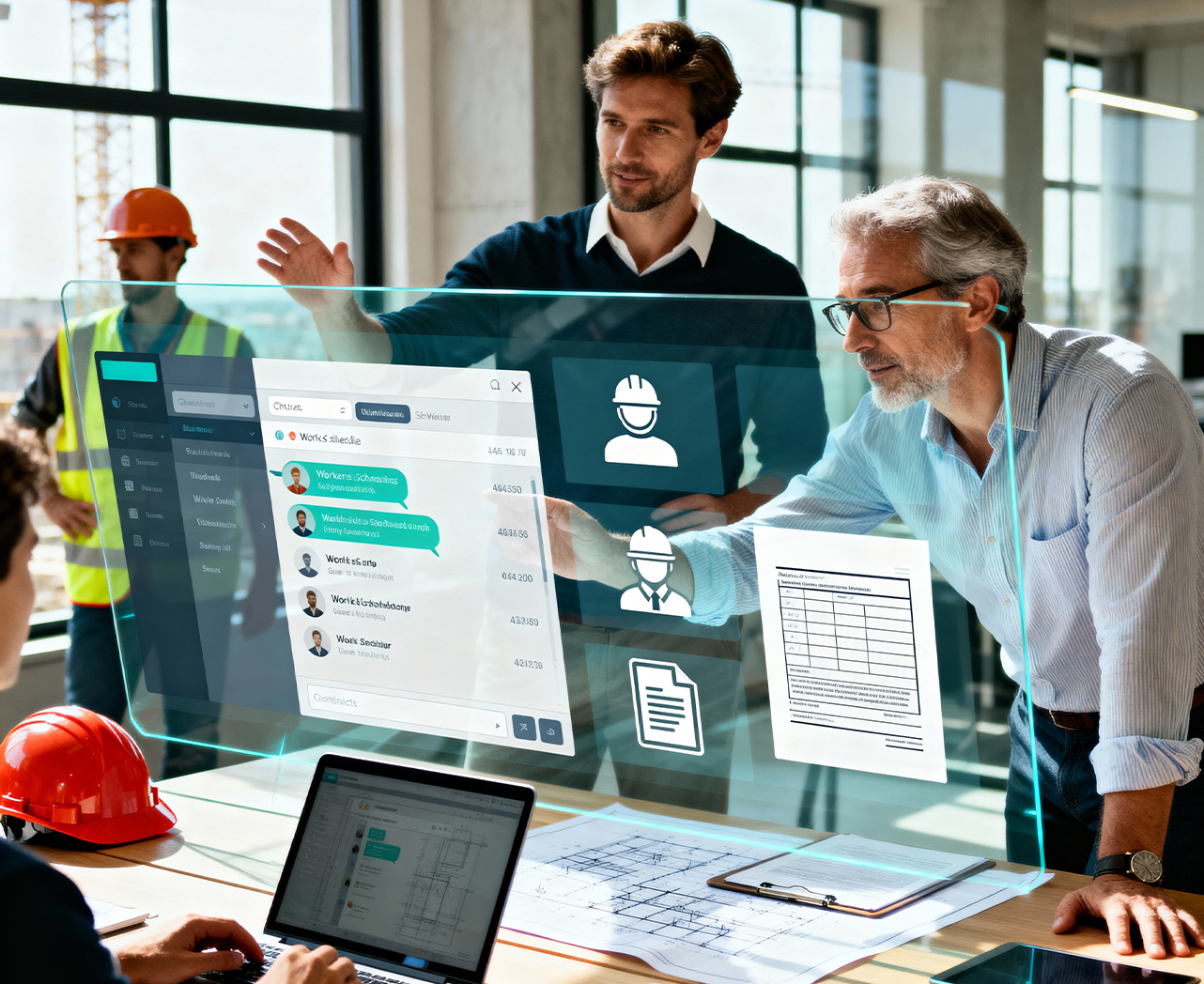 Kräftige Akzente, klare Typografie und eine UI, die auf Baustellen-Realität zugeschnitten ist: schnell, robust, selbsterklärend. Komponenten wie Karten, Listen, Badges und Statusanzeigen sind einheitlich gestaltet und erleichtern die Orientierung.