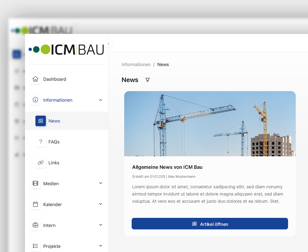 ICM Bau ist ein führender Schweizer Anbieter für Bau- und Temporärarbeit. Gesucht war ein zentrales Intranet, das interne Prozesse bündelt und Mitarbeitende, Kunden sowie Temporärkräfte verbindet: Chat, Dokumente, Einsatz- und Vertragsverwaltung, Berichte – alles in einer modernen, mobilen Oberfläche. AM Media setzte auf Drupal Headless mit REST-API als zuverlässige Datendrehscheibe.
